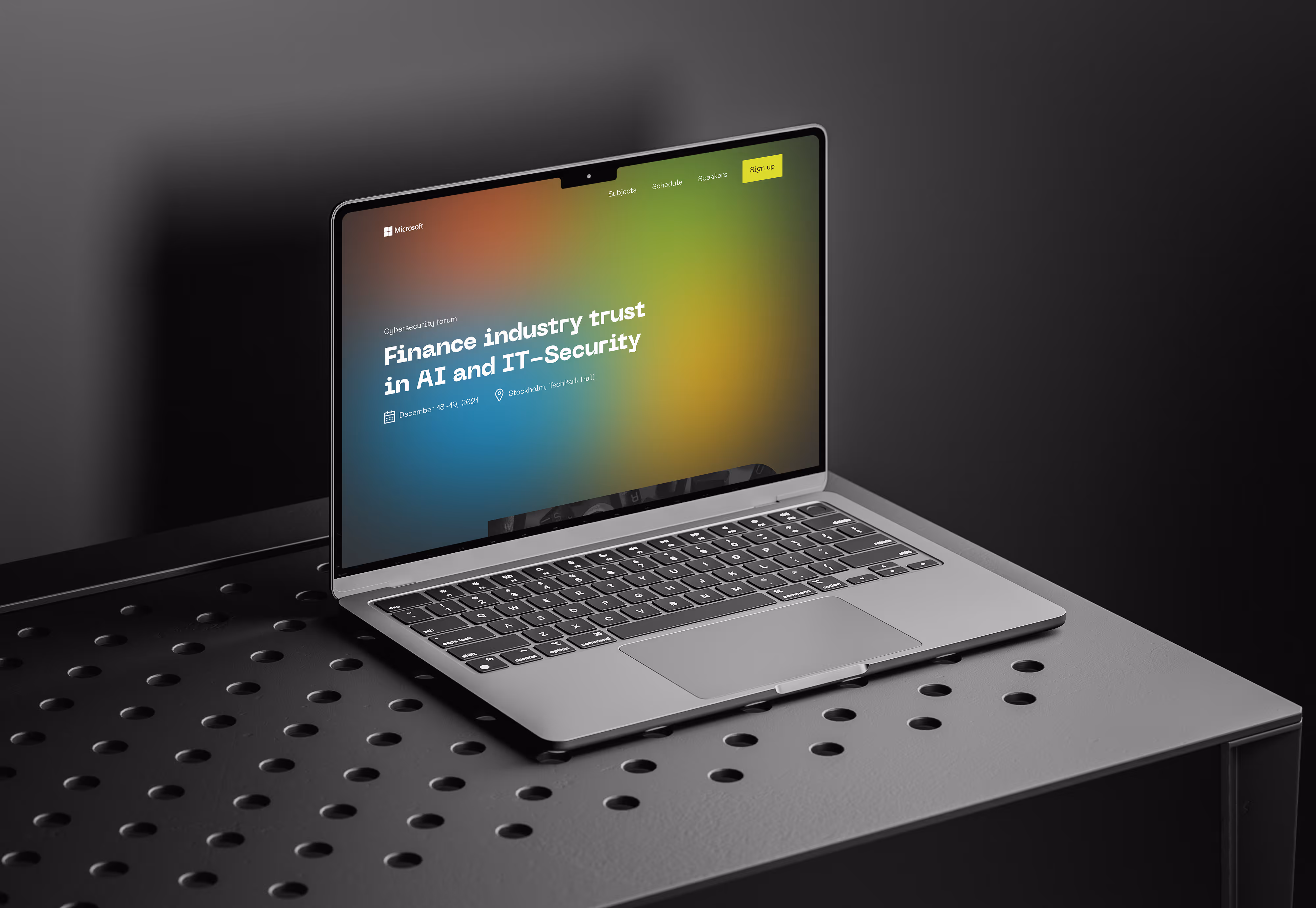 The design concept for this landing page explores a bold, experimental visual approach for a cybersecurity event.